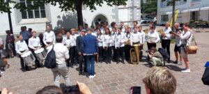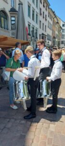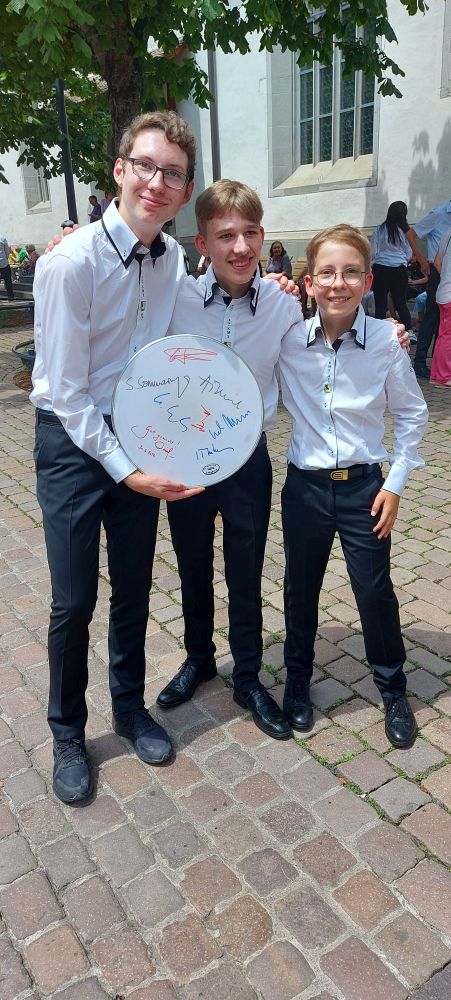 Die Knabenmusik umrahmte den Apéro des Bundesratsreisli in Schaffhausen. Unsere Jungtambouren konnten den Gesamtbundesrat für ein Stück begleiten und ergatterten ihre Unterschriften auf einem Trommelfell.